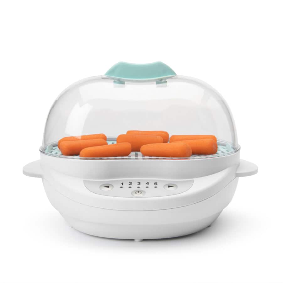 Con su motor de 420 vatios de base y sus 5 modos de ajuste, la vaporera nutribullet Baby® Turbo es un asistente multitarea en la preparación de la comida de tu bebé. Puede cocer al vapor ingredientes frescos para comidas caseras rápidas, descongelar lo que hayas preparado con antelación, e incluso esterilizar biberones, juguetes, tetinas y muchas más cosas. Además, es completamente autónomo, y la función de temporizador sólo te recuerda cuándo ha terminado.